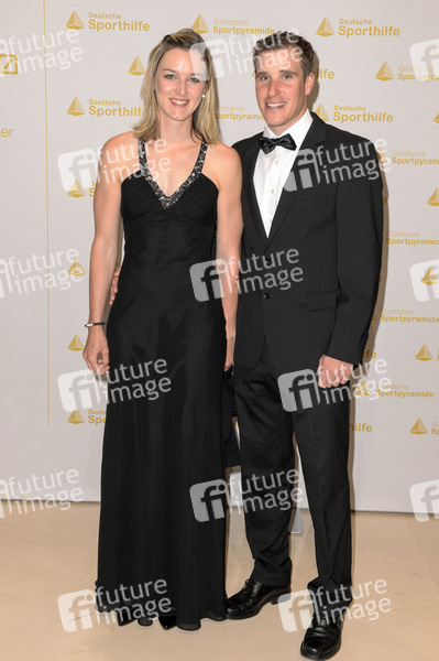 Denise Herrmann mit Begleitung bei der Verleihung der Goldenen Sportpyramide 2014 im Hotel Adlon. Berlin, 16.05.2014