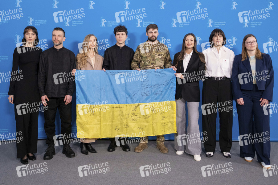 Prominenz, Celebrity, Celebrities, Fotocall, Kino, Film, Unterhaltung, Entertainment, Kultur, Filmfestival, Filmfest, 75th Berlin International Film Festival, Ukraine Flagge, Fahne, Filmschaffende, Protagonisten
