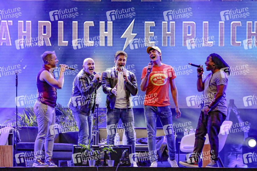 Oliver Pocher, Dittmar Bachmann, Alexander Klaws, Matze Kop und Mola Adebisi mit dem Programm 'Gefährlich ehrlich' live bei der Autokultur-Konzert-Reihe auf dem Schützenplatz. Hannover, 12.07.2020