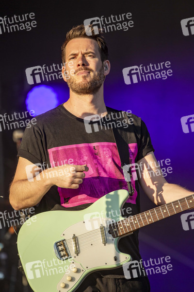 Johannes Strate von Revolverheld live bei einem Autokonzert an der Messe. Erfurt, 21.05.2020
