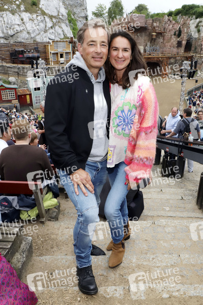Jan Sosniok mit Ehefrau Nadine bei der Premiere von 'Halbblut' bei den Karl-May-Spielen 2025 im Freilichttheater am Kalkberg. Bad Segeberg, 28.06.2025