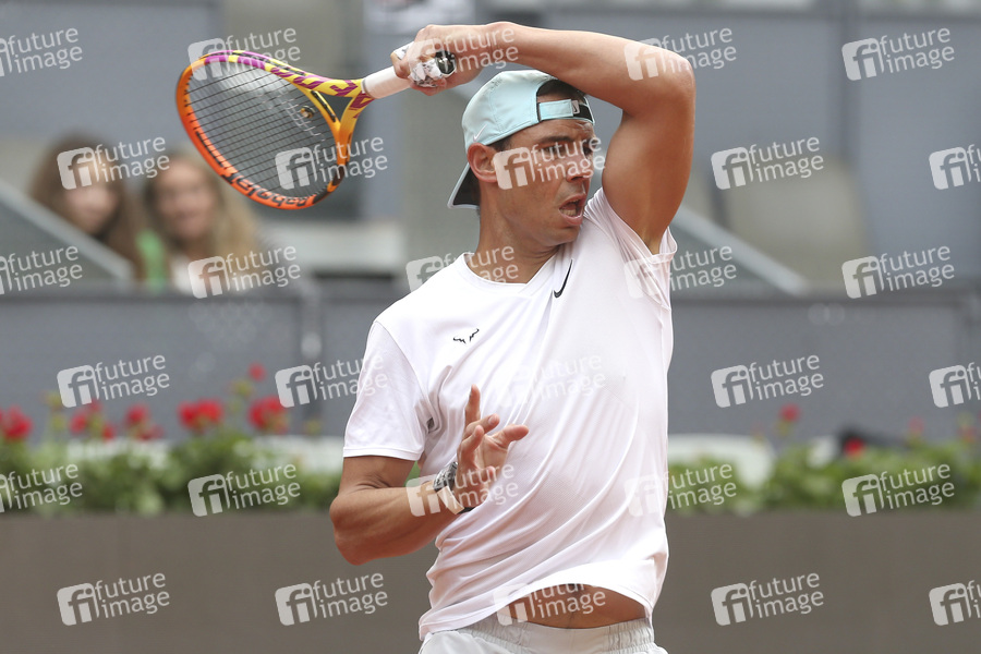 Rafael Nadal beim Training zum Mutua Madrid Open 2022 Tennis Turnier im Sportkomplex Caja Mágica. Madrid, 28.04.2022