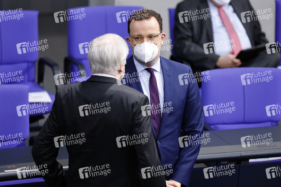 Horst Seehofer und Jens Spahn in der 203. Sitzung des Deutschen Bundestages im Reichstagsgebäude. Berlin, 13.01.2021