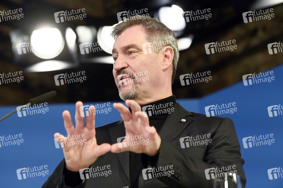 Markus Söder in der gemeinsamen Sitzung der Vorstände der CDU Deutschlands und der CSU Bayern zur Beratung und Beschlussfassung des Wahlprogramms der CDU/CSU zur Bundestagswahl 2025 im Hotel Telegraphenamt. Berlin, 17.12.2024