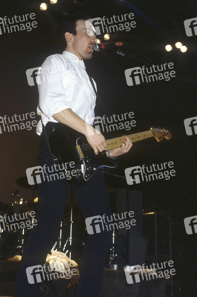 The Edge von U2 live bei einem Konzert der 'The Unforgettable Fire'-Tour in der Wembley Arena. London, 14.11.1984