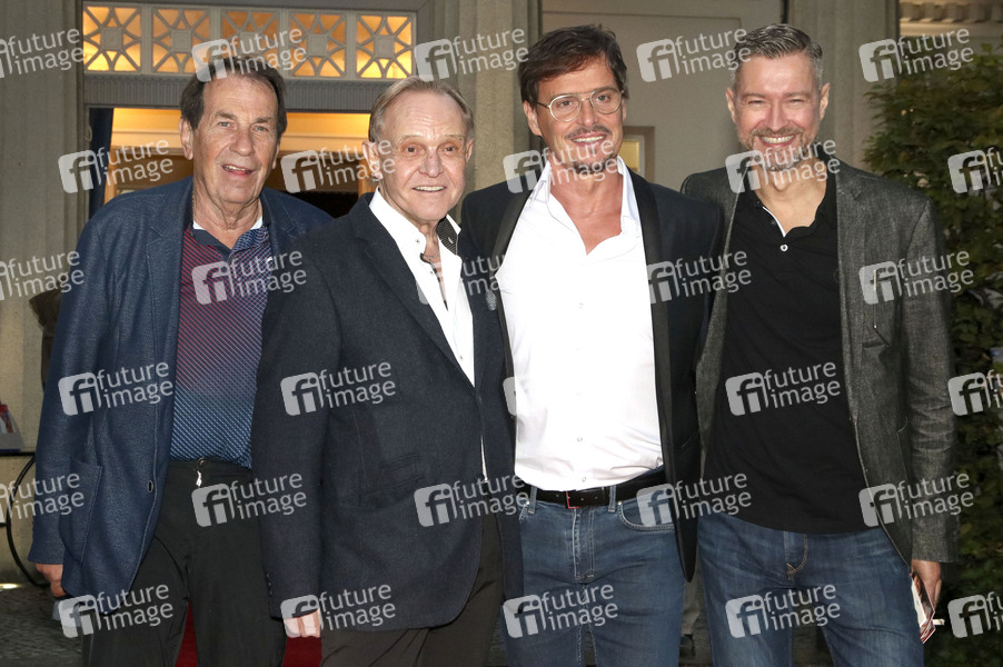 Jack Amsler, Georg Preuße, Felix Martin Poenichen und Gast bei der Premiere des Theaterstücks 'Dinge, die ich sicher weiß' im Schloßpark Theater. Berlin, 04.09.2021