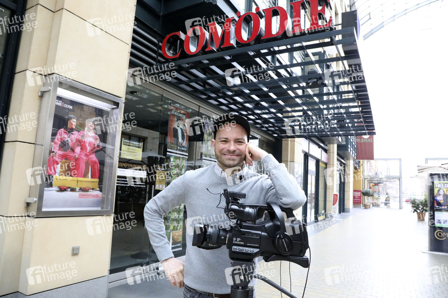 Christian Kühn bei der Aufzeichnung der Fernsehsendung zum 100. Geburtstag von Herbert Köfer vor der Comödie im World Trade Center Dresden. Dresden, 06.02.2021