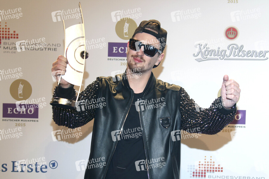 Robin Schulz mit dem Echo in der Rubrik Dance National bei der 24. Verleihung vom Musikpreis ECHO 2015 in der Messe Berlin im Palais am Funkturm. Berlin, 26.03.2015