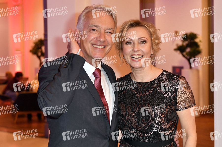 Christoph M. Ohrt mit Lebenspartnerin Dana Golombek bei der Verleihung des 17. Deutschen Hörfilmpreises 2019 in der Hauptstadtrepräsentanz der Deutschen Telekom. Berlin, 19.03.2019