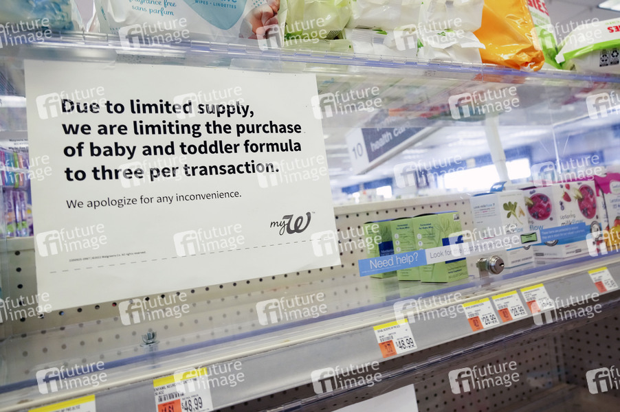 Babynahrung, Babymilchkrise, Kinder, leere Regale, Lebensmittel, Nahrungsmangel, Kleinkind, Inflation, Milch, Lieferengpass, Rohstoffknappheit, Lebensmittelsicherheit, Rationierung, Trockenmilch, ausverkauft, Babynahrungsknappheit, Preistreiberei, Säuglingsnahrung, Notverordnung, Rationierung