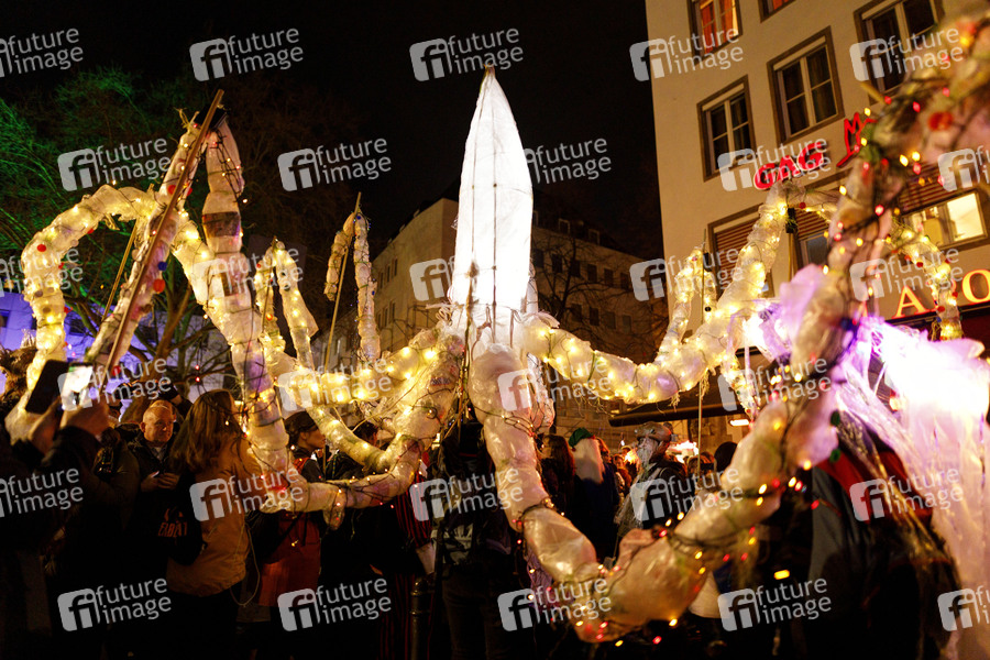 Besucher der alternativen Karnevalsumzugs Geisterzug 2020 von Initiator Erich Hermans unter dem Motto 'Jeister för Zokunft' auf dem Heumarkt. Köln, 15.02.2020