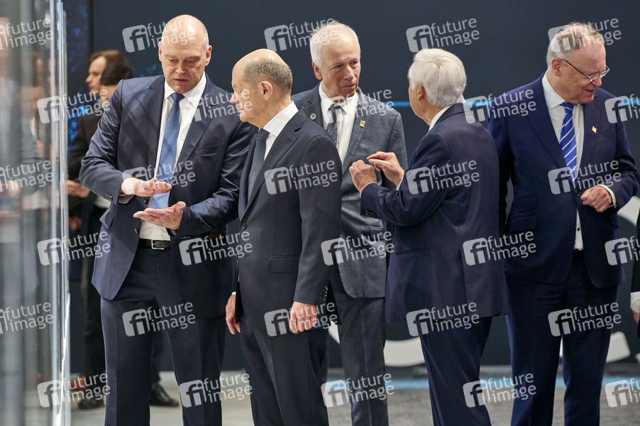 Deutsche Messe AG, Hannover Messe Industrie, Weltleitmesse der Industrie, Industriemesse, Industrieschau, Automatisierung, IT-Sicherheit, KI, Technologie, Wirtschaft, Ausstellung, Fair, Messe, Eröffnung, Opening, Leitmesse, Synergie und Kooperation, Wasserstoff & Brennstoffzellen, CO2-neutrale Produktion, Energizing a Sustainable Industry, Künstliche Intelligenz, Partnerland Kanada, Politiker, Bundeskanzler, Ehemaliger Außenminister von Kanada, Ministerpräsident von Niedersachsen