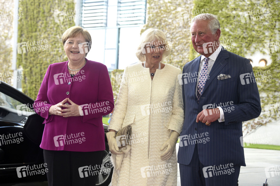 Politikerin, CDU, Bundeskanzlerin der Bundesrepublik Deutschland, Adel, HRH Camilla Rosemary Duchess of Cornwal, Camilla Mountbatten-Windsor, Camilla Parker Bowles, Prince Charles, HRH Charles Philip Arthur George, Prince of Wales, Fürst von Wales, Duke of Cornwall, Herzog von Cornwall, Thronfolger des Vereinigten Königreiches, Sohn von Königin Elisabeth II. und Prinz Philip, Royal, Empfang, königlicher Besuch, Ankunft