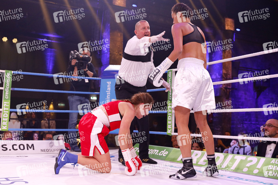 Gisele Oppermann vs. Doreen Dietel beim 1. Kampfabend von 'Das große SAT.1 Promiboxen' in Die Halle Tor 2. Köln, 18.09.2020