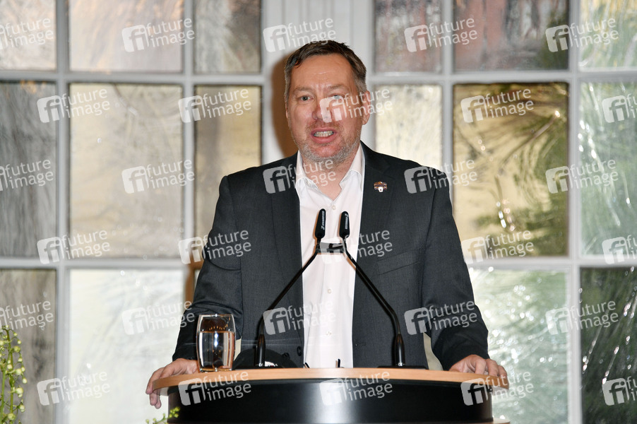 Thomas Bothstede bei Rede und Einzeichnungen der einzelnen Spieler, Trainer und Begleiter der Eisbären Berlin ins Gästebuch von Berlin aus Anlass des 8. Deutschen-Meister-Titels im Roten Rathaus. Berlin, 28.05.2021