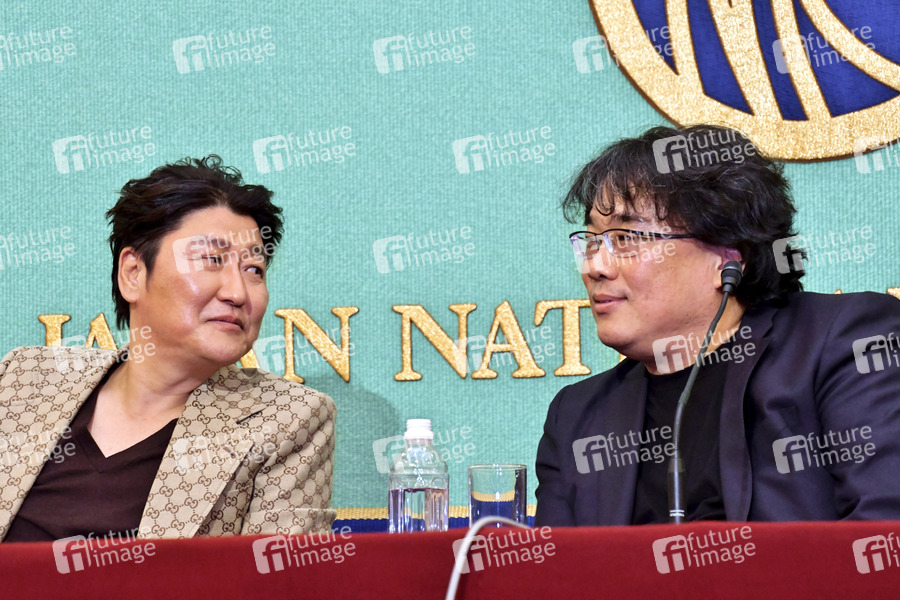 Song Kang-ho und Bong Joon-ho bei einer Pressekonferenz zum Kinofilm 'Parasite' im Japan National Press Club. Tokio, 23.02.2020