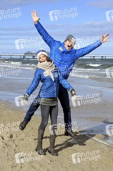 Gerit Kling mit Ehemann Wolfram Becker beim Baltic Lights 2023 Charity-Hunderennen zu Gunsten der Welthungerhilfe zwischen der Seebrücke Ahlbeck und der Seebrücke Heringsdorf. Heringsdorf, 04.03.2023