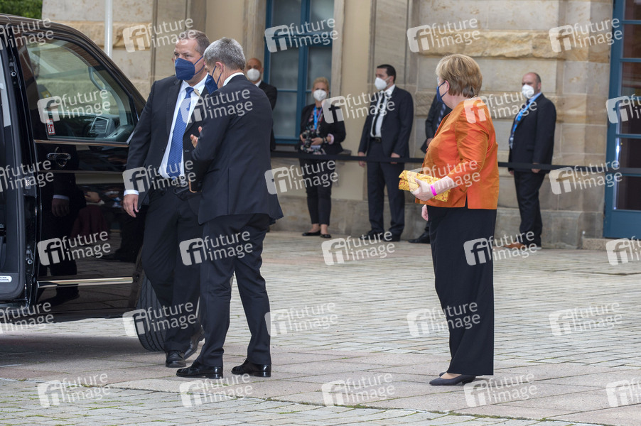 Angela Merkel mit Ehemann Joachim Sauer bei der Eröffnung der Richard-Wagner-Festspiele 2021 mit der Premiere von Richard Wagners 'Der fliegende Holländer' im Bayreuther Festspielhaus. Bayreuth, 25.07.2021