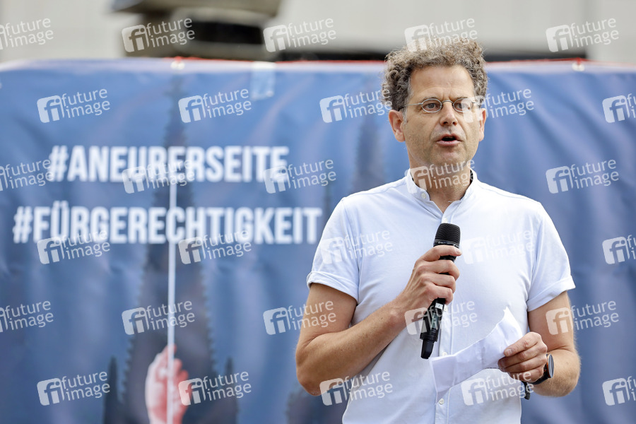 Klaus Thranberend bei einer Kundgebung auf dem Börsenplatz, bei der Gläubige aus dem Erzbistum Köln und Aktivisten der Bewegung Maria 2.0 das Verhalten der Kirche und Erzbischof Rainer Maria Kardinal Woelki bei der Aufarbeitung des Missbrauchskandal kritisieren. Am Nachmittag trifft auch eine Pilgergruppe von Pfarrer Klaus Koltermann aus Dormagen Nievenheim mit 60 Christen nach 40 Km Fußmarsch unter dme Motto 'Aufbruch nach Köln' auf dem Börsenplatz ein. Koltermann hat sich als einziger Pfarrer in Deutschland für den Rücktritt von Kardinal Woelki ausgesprochen. Köln, 12.06.2021