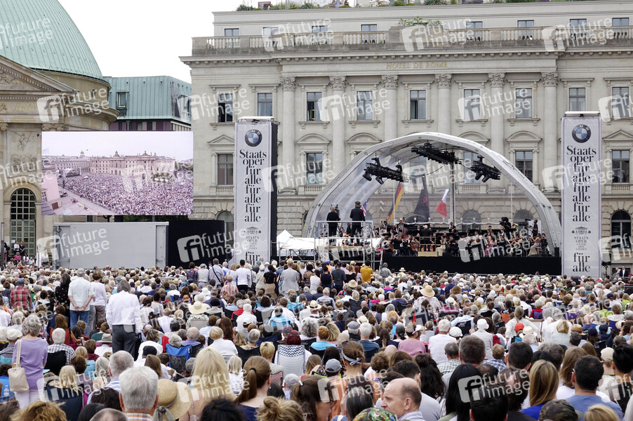 Konzertbesucher 'Staatsoper für alle 2019' Event mit den Sinfoniekonzerten 'Felix Mendelssohn Bartholdys Violinkonzert e-Moll' und 'Johannes Brahms zweiter Symphonie' mit der Staatskapelle Berlin live auf dem Bebelplatz. Berlin, 16.06.2019