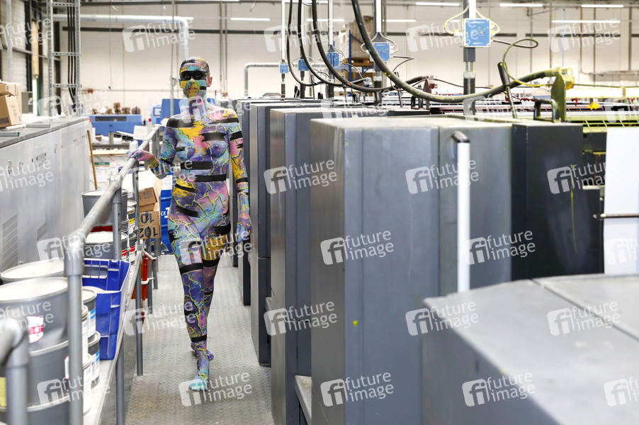Jörg Düsterwald, einer der bekanntesten Bodypainting- und Bodyartkünstler Deutschlands macht auf seine ganz eigene Art auf die prekäre Situation freischaffender Künstler während der Corona-Pandemie aufmerksam: Unter dem Hashtag #WirzeigenFarbe hat der Hamelner Künstler in der Produktionshalle der Druckerei QUBUS media mit seinem Model Lisa ein ausdruckstarkes Live-Bodypainting inszeniert - denn Künstlerinnen und Künstler wie er sehen und fühlen sich derzeit wortwörtlich 'ausgezogen bis aufs letzte Hemd'. Und nichts symbolisiert diesen bekannten Spruch besser als ein Bodypainting auf nackter Haut in einer Umgebung, in der es jeden Tag um Farbe geht. Die Live-Performance fand mit dem zeitgleichen Druckstart von Jörg Düsterwald's neuem Premiumkalender 'Bodypainting in Nature 2021' statt. Hannover, 14.07.2020