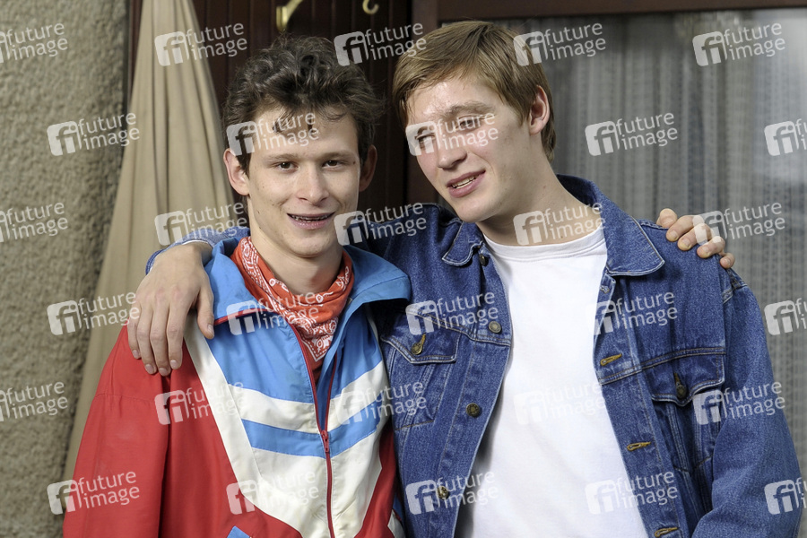 Joel Basmann und Jonas Nay beim Photocall am Filmset von 'Wir sind jung. Wir sind stark' am Haus Martin, Waldsassener Straße. Berlin, 30.05.2013