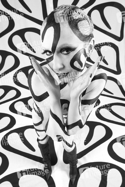 Bodypainting, Stoffdesign Anna Efverlund, Erotik, Frau, nackt, drinnen, weiblich, Muster, Chamäleon, erotic, woman, nude, indoor, female, chameleon