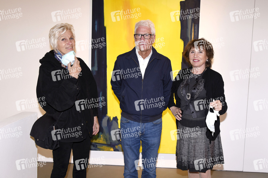 Magdalena Jetelova, Bernd Zimmer und Dunja Siegel bei der Vernissage zur Ausstellung 'Terranaut. Malerei - Die Idee Stoa169' in der Galerie Jahn Pfefferle. München, 10.06.2020