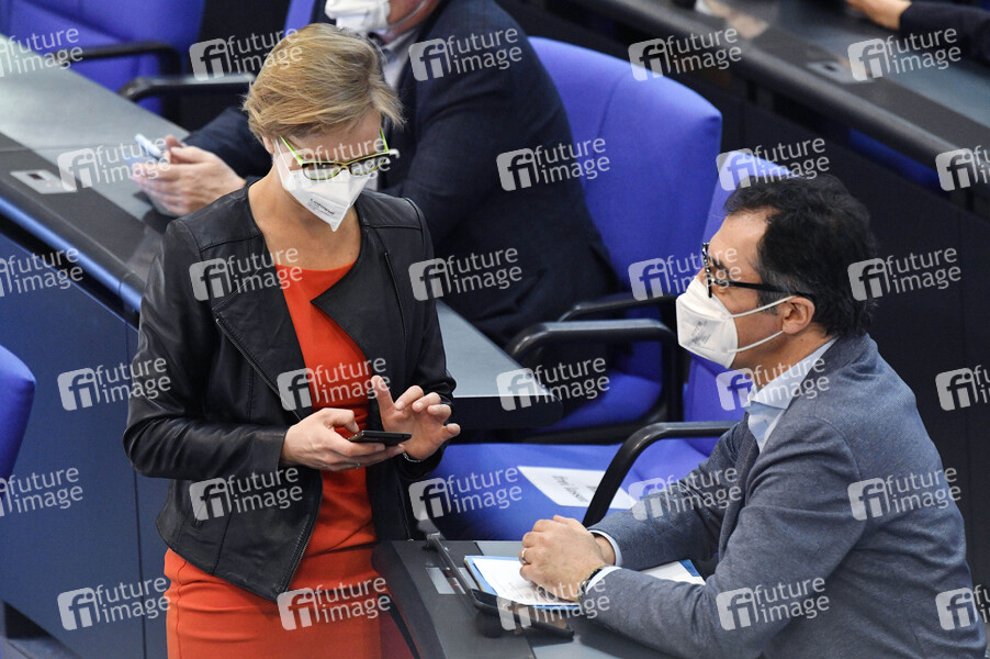 Franziska Brantner und Cem Özdemir in der 216. Sitzung des Deutschen Bundestages im Reichstagsgebäude. Berlin, 05.03.2021