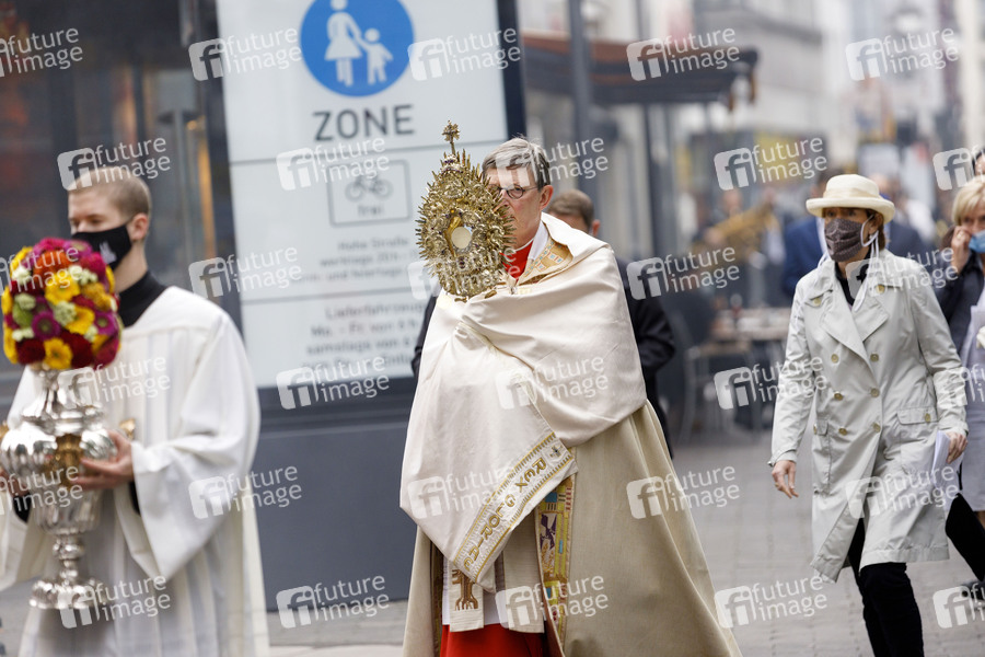 Rainer Maria Kardinal Woelki, Erzbischof von Köln, Theologe, Religion, Glaube, Prozession, Messe, Gott, Gottesfurcht, Katholizismus, katholisch, Christen, Christentum, Kölner Dom, Prozession, Fronleichnam, Fronleichnamsprozession, Umzug, Weihrauch, Erzbistum Köln, Erzbischof, Hochfest, Gottesdienst, Messe, Pontifikalamt, katholische Kirche, bleibende Gegenwart Jesu Christi im Sakrament der Eucharistie, Fronleichnamsgottesdienst, Maskenpflicht, Kirche, Kirche in Zeiten von Corona, Jesus, Christus, Coronavirus, Coronakrise