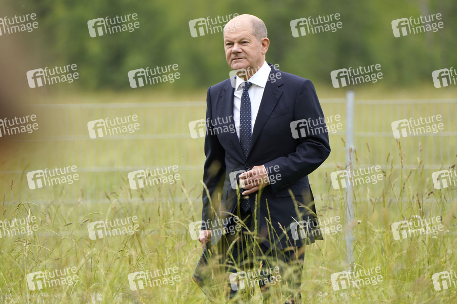 Olaf Scholz bei der Abschlusspressekonferenz zum G7-Gipfel auf Schloss Elmau. Klais, 28.06..2022