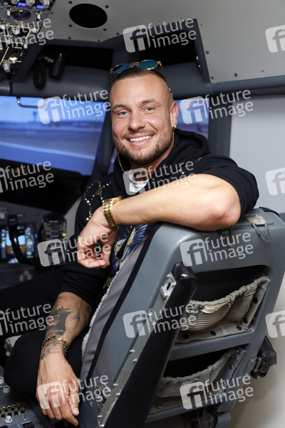 Eric Sindermann bei einem Fototermin im Boeing 737 Flugsimulator der AerotaskGmbH in der Motorworld Köln. Köln, 27.10.2021