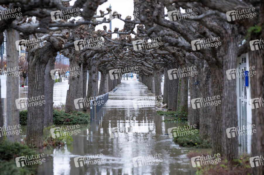 Das erste Jahreshochwasser am Rhein nahe des Pegelhöchstandes. Königswinter, 04.02.2021