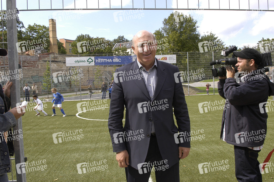 Eröffnung des Kinderspiel- und Bolzplatzes in der Mühlenstrasse in Pankow mit Dieter Hoeneß und Bürgermeister Matthias Höhne
