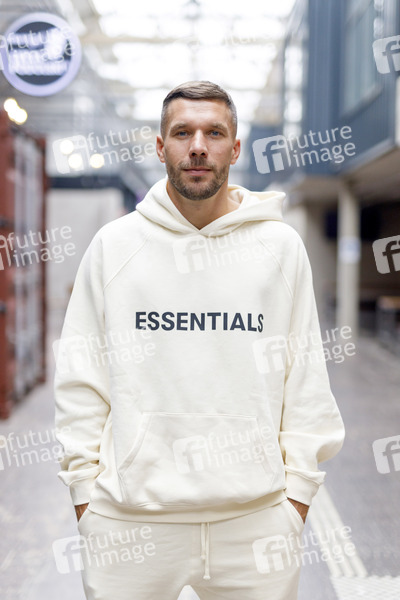 Lukas Podolski bei der Übergabe der Spende von 250.000 Euro aus der REWE Jackpot Aktion an die Lukas Podolski Stiftung in der Strassenkicker Base. Mit dem Großteil des gesammelten Geldes wird der Bau eines modernen Straßenkicker-Courts in Köln Müngersdorf unterstützt. Der darüber hinaus gehende Spendenbetrag fließt als Fördermittel in weitere soziale Projekte der Lukas Podolski Stiftung, vor allem in den Aufbau und die Unterstützung sportbasierter Bildungsprojekte für Jugendliche und Schulen in der Soccer Halle 'Strassenkicker Base' in Köln-Mühlheim (Quelle: https://fuerdenfussball.rewe.de/). Köln, 01.07.2021