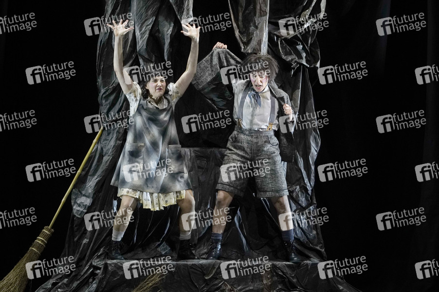 Alma Sade und Susan Zarrabi bei der Fotoprobe der Oper 'Hänsel und Gretel' von Engelbert Humperdinck nach dem Märchen der Brüder Grimm unter der Regie von Dagmar Manzel in der Komischen Oper Berlin im Schillertheater. Berlin, 22.01.2025