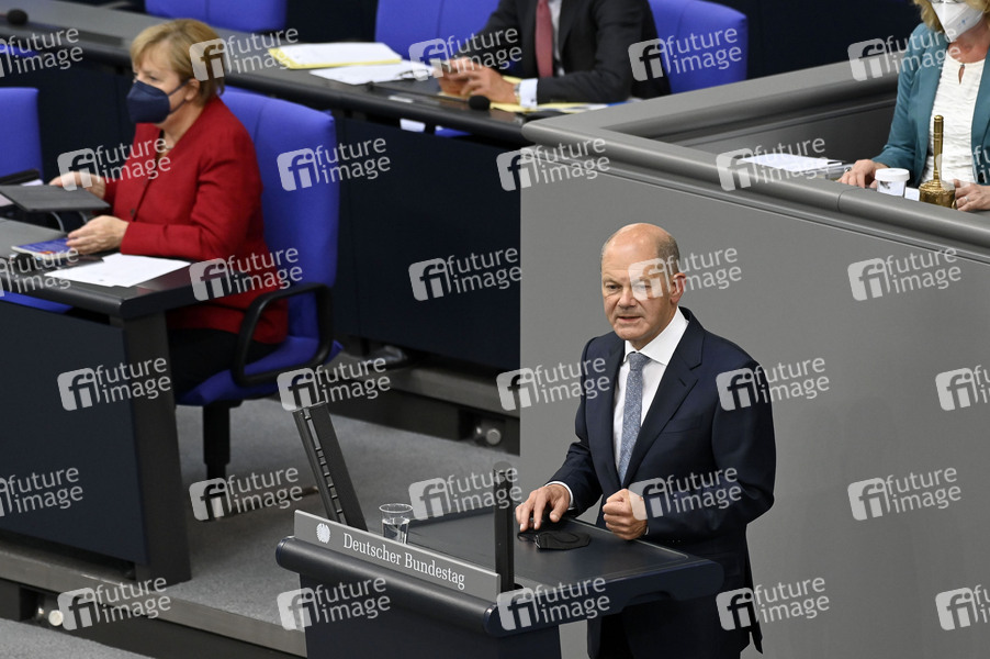 Angela Merkel und Olaf Scholz in der 238. Sitzung des Deutschen Bundestages im Reichstagsgebäude. Berlin, 25.08.2021