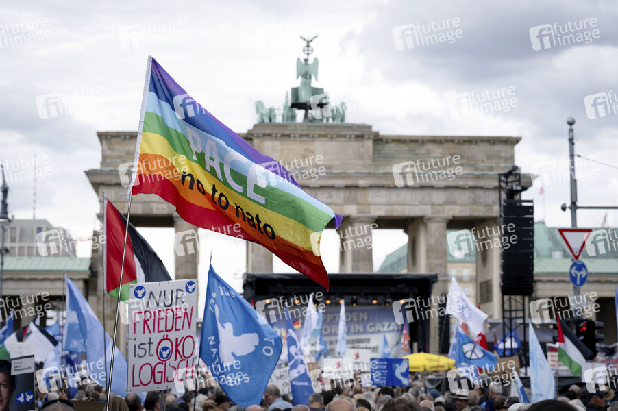 Demonstranten bei der Kundgebung für Frieden im Gazastreifen unter dem Motto 'Stoppt den Völkermord in Gaza!' am Brandenburger Tor. Berlin, 13.09.2025