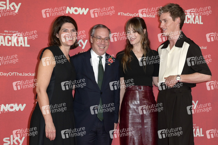 Anne Llewellyn, Edward Llewellyn, Hannah Bagshawe und Eddie Redmayne bei der Premiere der Sky Serie 'The Day of the Jackal' in der Villa Wolkonsky. Rom, 07.11.2024