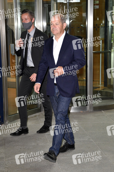 Olaf Scholz beim Pressestatement zu den Ereignissen im Rahmen der Großdemonstration in Berlin gegen die bestehenden Maßnahmen zur Eindämmung der Corona-Pandemie in der Passage vor dem Willy-Brandt-Haus. Berlin, 30.08.2020