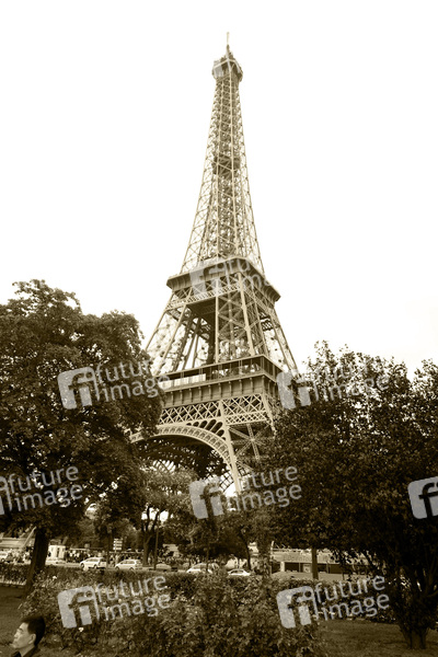Wahrzeichen von Paris, erbaut zwischen 1887 und 1889 von der Gustave Eiffel & Cie, für die Weltausstellung anlässlich des hundertjährigen Jubiläums der Französischen Revolution erbaut, 300 Meter hoch, über 10.000 Tonnen schwer, für die Öffentlichkeit zugängliche Plattformen befinden sich auf 57 und 115 sowie 276 Meter Höhe