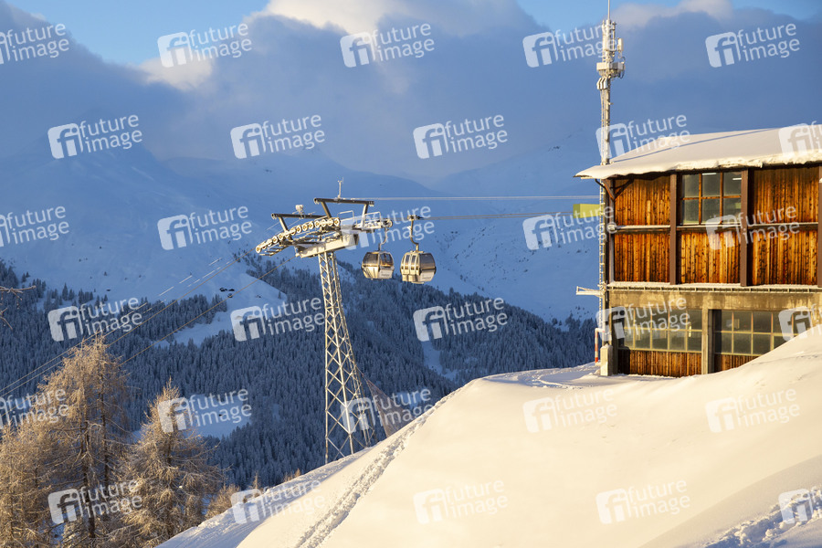 Symbolfoto, Symbolbild, Energie, Berge, Schweizer Alpen, Verkehrsmittel, Luftseilbahn, Förderseile, Seilbahnstützen, Hochgebirge, Seilbahnwesen, Drahtseil, Stahl, Tragseil, Kabine, Gondel, Schnee, Skifahren, Schlittenfahren, Schlitteln, Schlitten, Abfahrt, Langlauf, Pendelbetrieb, Umlaufbetrieb