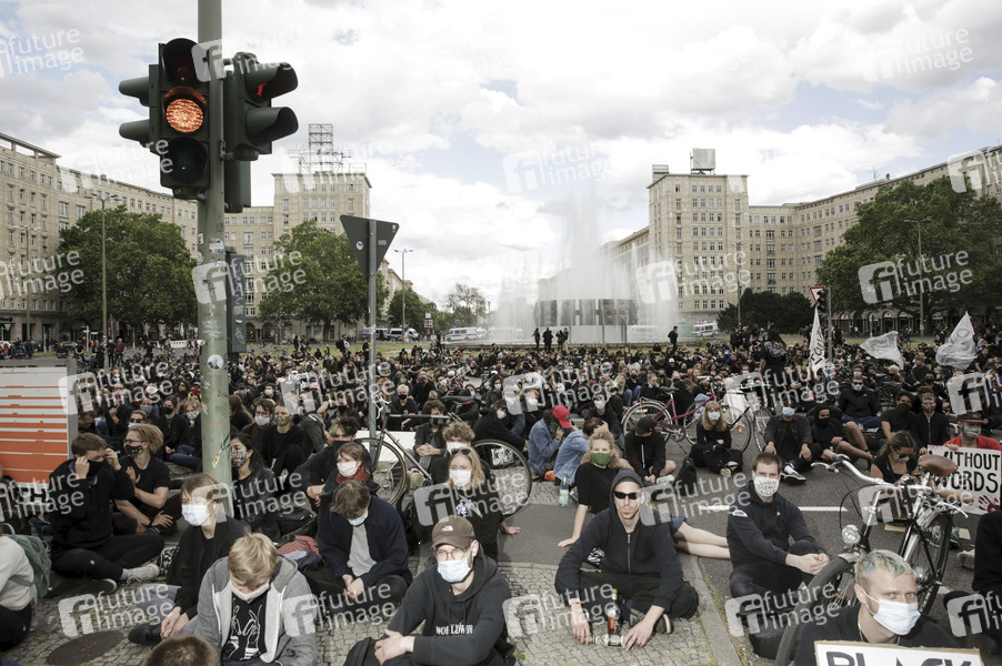 Ein Teil der Demonstranten der 'Silent Demo' am Alexanderplatz zog weiter zum Strausberger Platz und veranstaltete eine Sitzblockade. Berlin, 06.06.2020