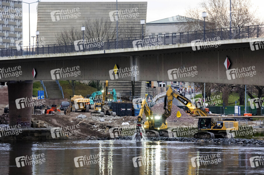 Straßenbrücke, Kulturdenkmal, Elbbrücke, Balkenbrücke, Spannbetonbrücke, Erbaut in den 1970er Jahren, Innere Altstadt, Innere Neustadt, Pirnaische Vorstadt, Carola von Wasa-Holstein-Gottorp, Namensgeber, Brücke, Einsturz, Elbe, Carolabrücke, Abriss, Brücke, Elbe, Bauarbeiten, Bagger