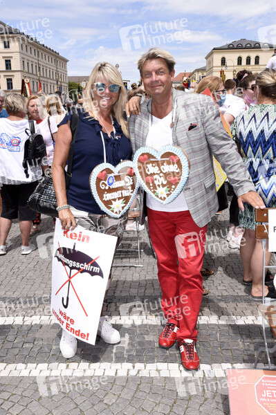 Wolfgang Kraus / DJ Woiferl mit Ehefrau Gisela bei der Kundgebung der Schausteller unter dem Motto 'Rettet unsere Märkte und Volksfeste' auf dem Odeonsplatz. München, 09.07.2020