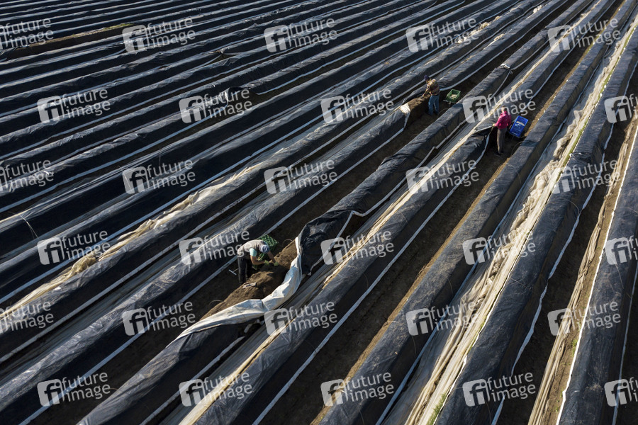 Spargelfeld, Spargel, Spargelfelder, Spargelernte, Gemüse, Erntehelfer, Luftbild