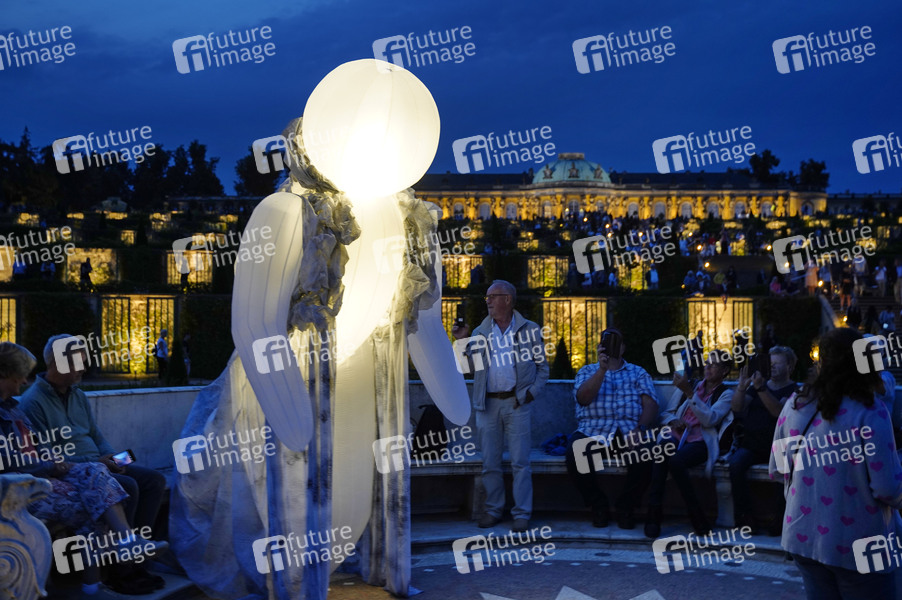 Company Quidam's bei der Potsdamer Schlössernacht 2021 im Schlosspark Sanssouci. Potsdam, 21.08.2021