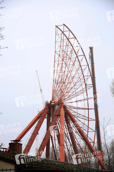 Rückbau des Riesenrads im Spreepark. Vier Millionen Euro investiert Grün Berlin in die Sanierung des alten Riesenrads. Die sanierte Konstruktion soll u.a. eine Lichtinstallation erhalten. 2024 soll das Riesenrad als Mittelpunkt des neuen Spreeparks wieder in Betrieb gehen. Berlin, 04.02.2021
