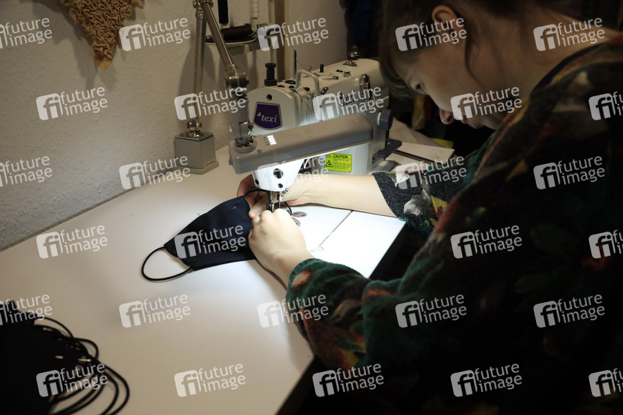 Die Berlinerin Nora beim Nähen von Gesichtsmasken. Berlin, 10.04.2020