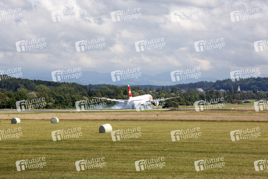 Boeing 777-3DEER, Reg: HB-JNH beim Anflug zum Flughafen Zürich, 15.08.2019